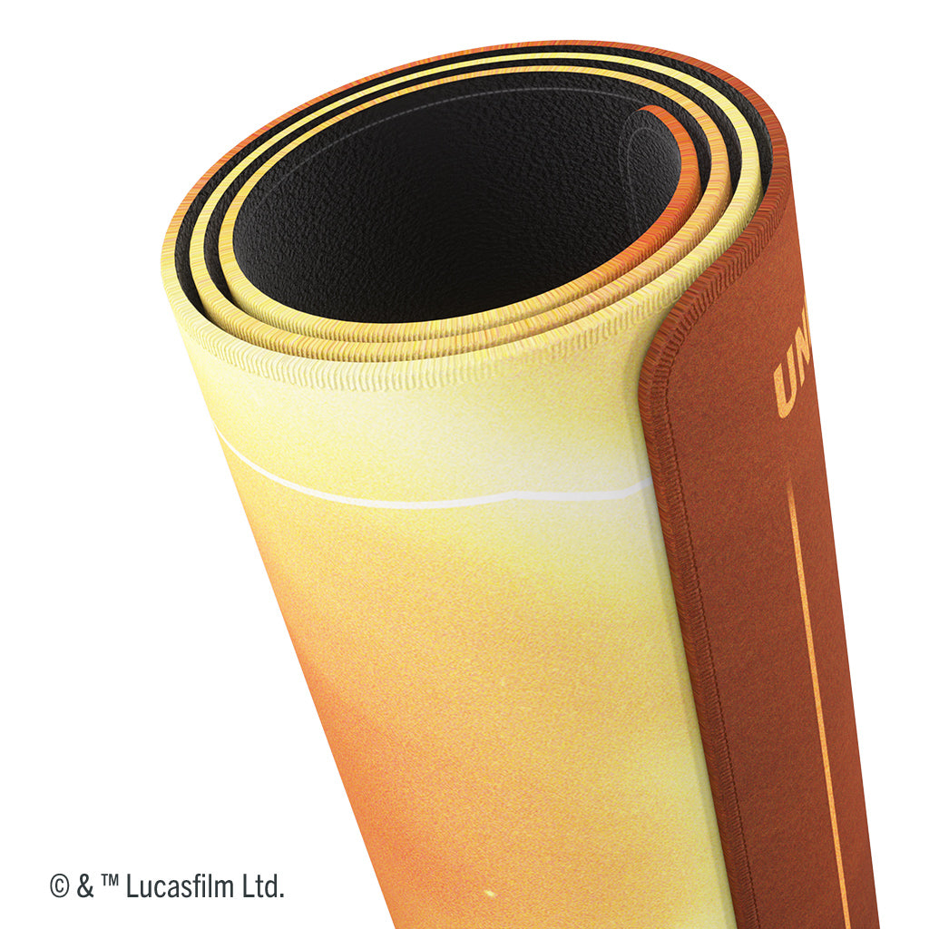 This premium quality, full color printed, and officially licensed Star Wars: Unlimited Game Mat is a must-have accessory for every passionate gamer! Available in 3 new premium-quality prints of iconic designs, one design comes with card and play zones, it brings the exciting atmosphere of the Star Wars franchise right to the gaming table. The Game Mat enriches the game and perfectly complements every round played! The softly cushioned playmat is 2 mm thick and protects playing cards from rough or dirty surfaces. Each mat is outfitted with an ultrafine surface and an anti-slip back side that keeps it safely in place during gameplay. The fascinating design, the comfortable feel, and soft material are ideal for an upgraded gaming experience or a home desktop. The Game Mat is perfect for all enthusiastic fans of the franchise as well as players of TCGs, LCGs, and a vast variety of games alike.